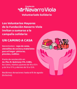 Así, ellas mismas se fueron transformando en las protagonistas del lento camino hacia la externación. En el marco de ese proceso, nació el proyecto Voluntarios +60: Un camino a casa, una nueva campaña solidaria de la Fundación Navarro Viola, destinada a acompañar a esas mujeres adultas mayores que están construyendo su nuevo hogar.