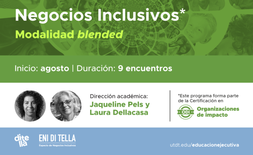 Desde el Espacio de Negocios Inclusivos de la Universidad Torcuato Di Tella (ENI Di Tella) se ofrece un programa de Negocios inclusivos concebidos como oportunidades para la innovación, el crecimiento y la competitividad al mismo tiempo que crean un impacto positivo en el desarrollo y la inclusión social. Pueden manifestarse en la cadena de valor, en el vínculo con el personal, o en el acceso a productos y servicios. Los negocios con impacto pueden gestarse y desarrollarse por grandes, medianas y pequeñas empresas, así como por emprendedores que buscan nuevos modos de crear valor.