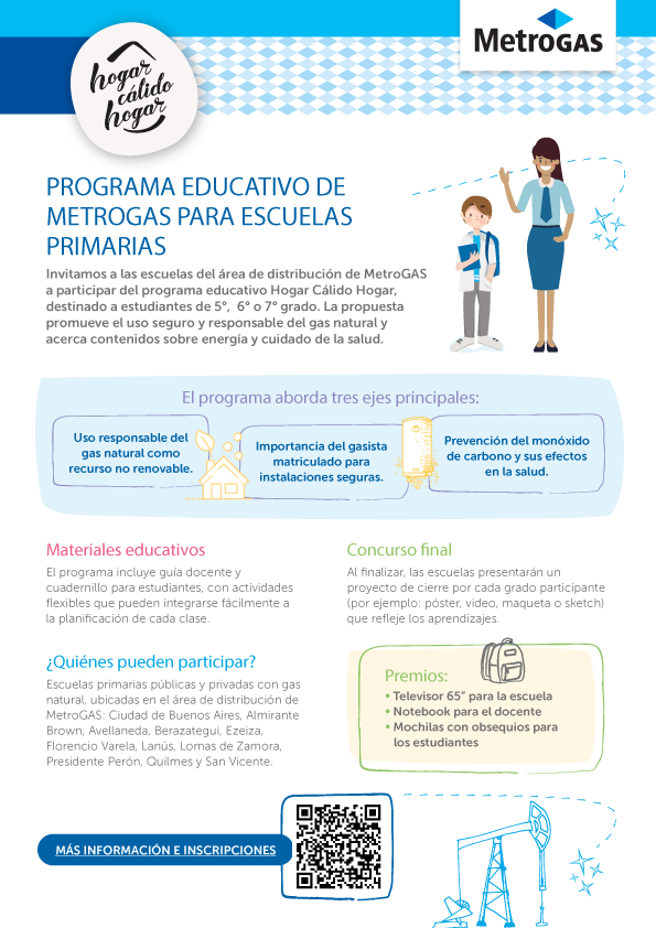 MetroGAS lanzó una nueva edición de su programa educativo Hogar Cálido Hogar, dirigido a alumnos de 5°, 6° y 7° grado y propone llevar al aula contenidos concretos sobre el uso seguro del gas natural, con el objetivo de que los estudiantes incorporen hábitos que luego puedan trasladar a sus hogares.