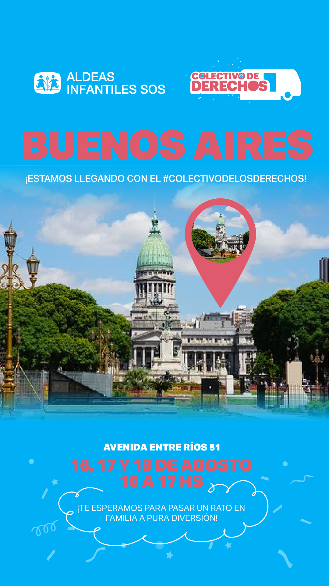 Del 16 al 18 de agosto hará su tercera y última parada en la Plaza del Congreso, en la Ciudad de Buenos Aires (Av. Entre Ríos 51), donde se desplegará un stand móvil para que todas las familias puedan acercarse y, de una manera lúdica, conocer y aprender sobre los derechos de las Infancias.